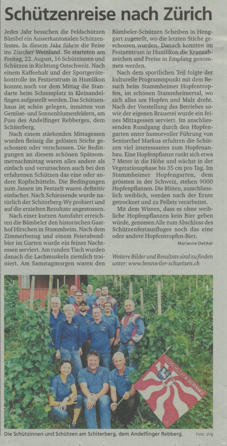 Bericht ObZ - 04. September 2025 - Schützenreise nach Zürich
